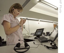| Professor Suzan Harkness works with an iPod at the University of the District of Columbia in Washington. She can record lectures as podcasts. |