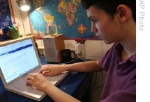 | Eighth grader Eyck Freymann works on his political blog from his home in New York |