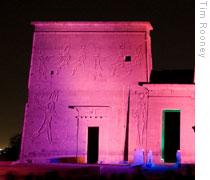 | A building at Philae during the sound and light show |