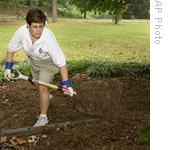 | Mulch is spread in a city park in Atlanta, Georgia |