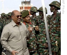 | President Omar al-Bashir with Sudanese troops in Darfur on Wednesday |