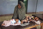 | Malnourished children from southern Somalia on a bed at Bandar hospital in Mogadishu, Somalia |