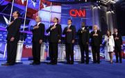 This week, the eight candidates seeking the Republican Party’s presidential nomination1 debated national security and foreign policy issues. CNN and two conservative research groups, the American Enterprise Institute and the Heritage Foundation, organized the debate in Washington.