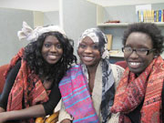 | (From left) Rita Achiro, Ehklas Ahmed and Judith Abdalla sing in the Pihcintu Multicultural Children's Chorus. |