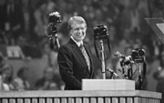 | Jimmy Carter smiles at the crowd during the Democratic National Convention in New York on July 15, 1976 |