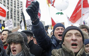 | Demonstrators in Moscow protest against suspected cheating in Russia's parliamentary elections |