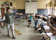 | Xavier Chavez, a teacher of English as a second language, teaching a summer history class at Benson High School in Portland, Oregon |
