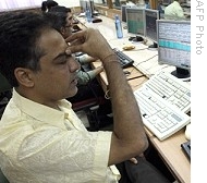 | Stock dealer5 reacts during intra-day trade in Mumbai, 29 Sep 2008 |