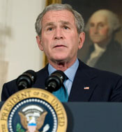 | U.S. President George W. Bush speaks regarding the economic rescue plan at the White House in Washington, D.C., 30 Sep 2008 |