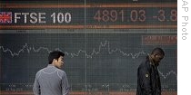 | A large screen graph shows the performance of Britain's FTSE 100 share index in London, Monday 29 Sept. 2008 |