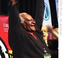 With the energy of a rock star, Archbishop Desmond Tutu of South Africa told the youth they can make a difference, and the students responded to him.