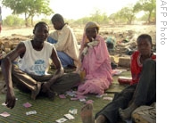 | A displaced family sits in a camp in the vicinity of the eastern Chadian European Union peacekeepers' base in Farchanaon, 12 May 2008 |