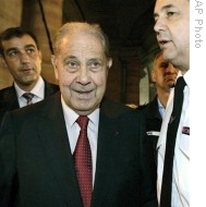 | Former French Interior Minister Charles Pasqua, center, arrives at a Paris courthouse, 06 Oct 2008 |