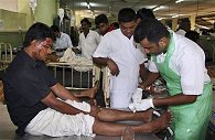 | An injured victim of explosion receives treatment at a hospital in Anuradhapura, about 210 kilometers northeast of Colombo, Sri Lanka, Monday, 06 Oct. 2008 |