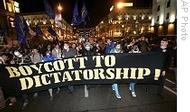 | Opposition activists10 protest against the parliamentary elections shortly after polling closed, in the Belarusian capital Minsk, 28 Sep 2008 |