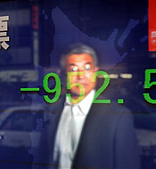 | A passerby10 looks at the electronic stock board in front of a Tokyo brokerage, 08 Oct 2008 |
