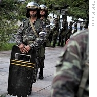 | Thai soldiers secure area outside Government House in Bangkok, 08 Oct 2008 |