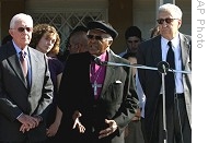 | From left: Jimmy Carter, Archbishop Desmond Tutu, former Algerian Foreign Minister Lakhdar Brahimi in Nicosia, 08 Oct 2008 |