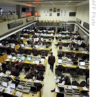 | Stockbrokers6 do business on trading floor of Nigerian Stock Exchange in Lagos, 08 Oct 2008 |