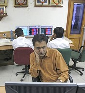 | Stock broker4 reacts as he watches share prices at brokerage in Mumbai, 10 Oct 2008 |