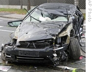 | The wreckage3 of far right politician Joerg Haider's car is seen at the set of the accident in Lambichl near Klagenfurt, Austria, 11 Oct 2008 |
