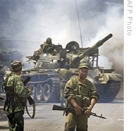 | Russian troops take position at entrance of Gori, 14 Aug 2008 |