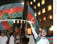 | Local residents cheer the presumed re-election victory of Ilham Aliyev in Azerbaijan's presidential election in Baku after close of voting, 15 Oct. 2008 |