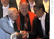 | John McCain (L) and Barack Obama shake hands at Alfred E. Smith Memorial Foundation Dinner at the Waldorf Astoria hotel in New York, 16 Oct 2008 |