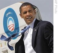| Barack Obama exits campaign plane in Tampa, Florida, 20 Oct 2008 |
