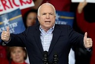 | Sen. John McCain gestures at a rally in Woodbridge, Virginia.,18 Oct. 2008 |