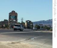 The battle for Nevada may be decided5 in places like Pahrump, a sprawling6 desert town of 40,000. Located 100 kilometers northwest of Las Vegas, Pahrump has suffered from a souring economy and downturn in tourism.