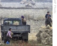 | North Korean farmers work the fields near Pyongyang, 22 Oct 2008 |