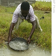 | Martin Mhizha fetches water from an unprotected water source in Epworth, Zimbabwe, (file photo) |