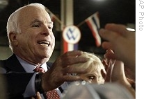| Republican presidential candidate Sen. John McCain greets supporters at a rally in Denver, 24 Oct. 2008 |