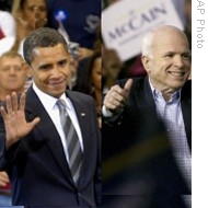 | US presidential candidates Barack Obama in Fayetteville, N.C. and John McCain in Toledo, Ohio, 19 Oct 2008 |