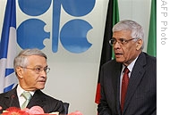 | OPEC President Chakib Khelil (L) and OPEC secretary general Abdalla Salem El-Badri (R) at a press conference after an OPEC meeting in Vienna, 24 Oct 2008 |