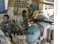 | Ethiopian soldiers man a position in Somalia's embattled capital following a fresh outbreak of violence, 17 Jun 2008 |