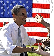 | Senator Barack Obama campaigning in Cincinnati, Ohio, 09 Oct. 2008 |