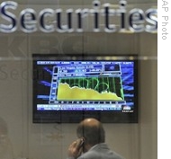 | Stock prices on screen in downtown Budapest after Hungary reached agreement with IMF and EU on economic rescue package, 29 Oct 2008 |