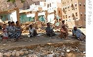 | Yemenis sit on the rubble3 of collapsed4 buildings in the city of Shibam in Hadramaut province, 28 Oct. 2008 |
