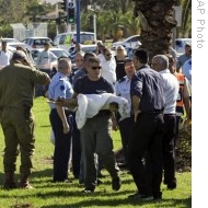 | Israeli police sapper removes the remains3 of an exploded rocket fired by Palestinian militants from Gaza Strip, that landed in the southern Israeli city of Ashkelon, 05 Nov 2008 |