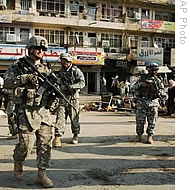 | U.S and Iraqi army soldiers secure the area at the scene were bombs exploded, in Baghdad, Iraq, 04 Nov 2008 |