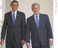 | Barack Obama (l) and George Bush at the White House, 10 Nov 2008 |