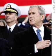 | President Bush holds his hand to his heart during the playing of the National Anthem1 in New York, Tuesday, 11 Nov 2008 |