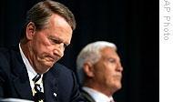 | General Motors CEO Rick Wagoner at a news conference in Detroit with company Product Development Vice20 Chairman Bob Lutz, right. 07 Nov, 2008 |