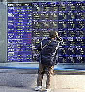 | A passerby4 looks at an electronic stock indicator5 of a securities company in Tokyo, 13 Nov 2008 |