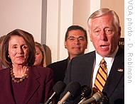 | House Speaker Nancy Pelosi (l), and Majority Leader Steny Hoyer, 18 Nov 2008 |
