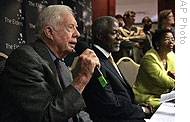 | The Elders, former US president Jimmy Carter (L), former UN secretary- general Kofi Annan(C), and rights advocate Graca Machel (R), in Johannesburg, 24 Nov 2008 |