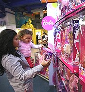 | A mother and daughter shop for a Barbie at a Toys R Us store, in New York, 21 Nov 2008 |