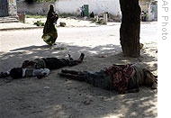 | The bodies of alleged6 insurgents7 lie in Mogadishu after fighting broke out on 21 Nov 2008 |